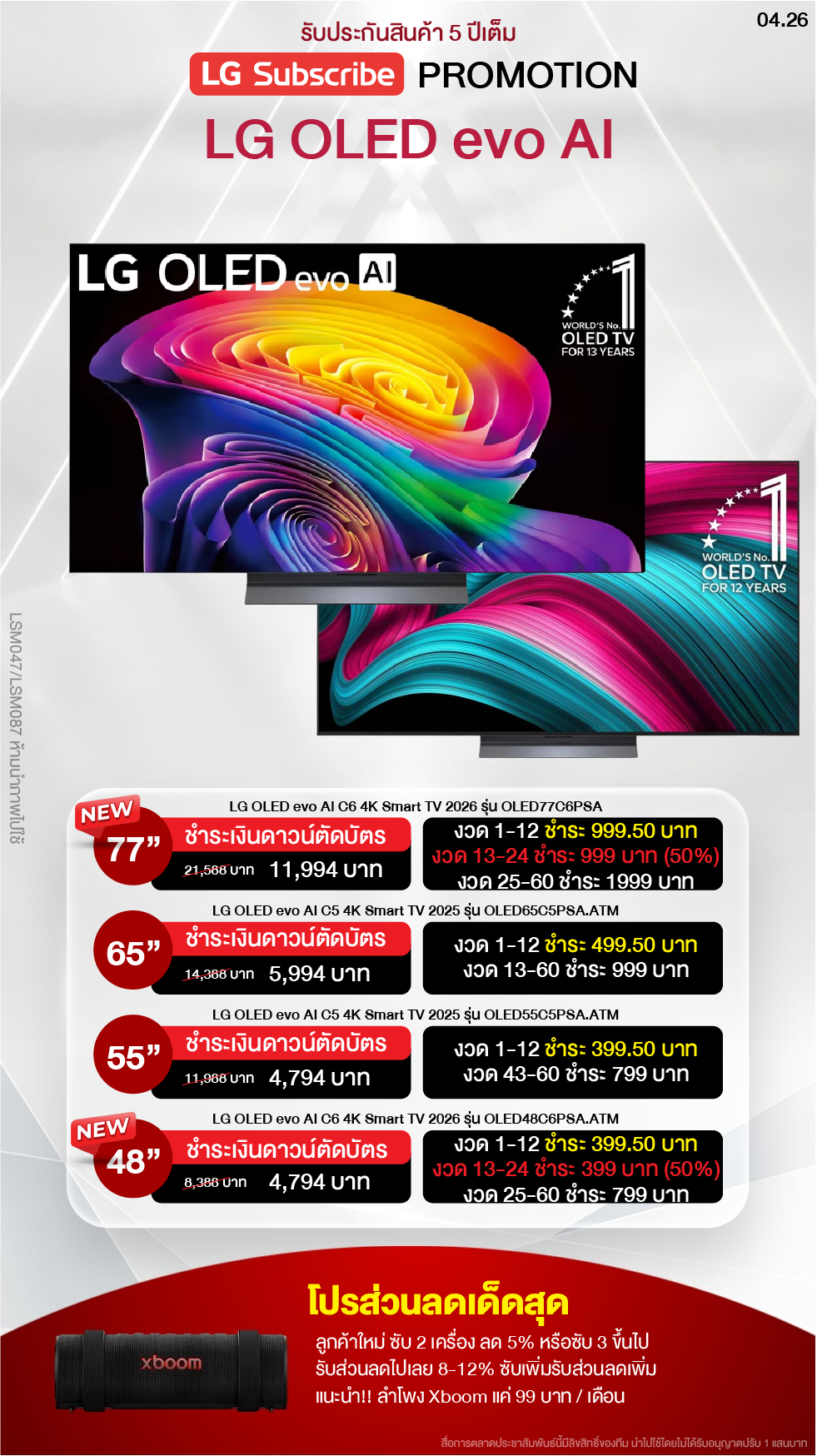 สินค้า 4 ประเภทที่ลูกค้าต้องชำระเงินดาวน์ก่อนรับสินค้า ทีวี มอนิเตอร์ ซาวด์บาร์ และลำโพง xboom แต่ข้อดีคือ 12 เดือนแรกผ่อนสบาย ครึ่งหนึ่งของค่างวดปกติ