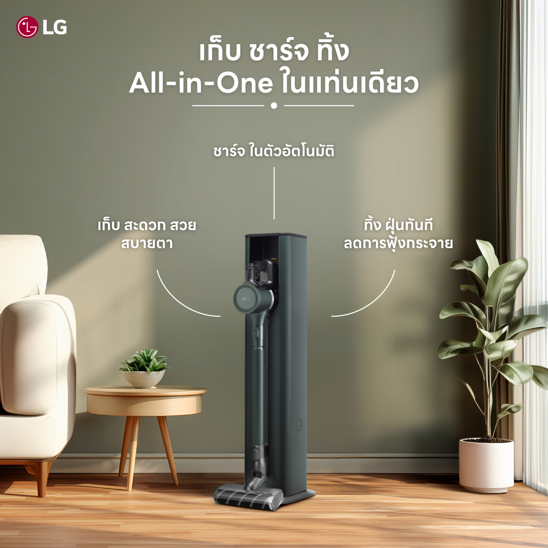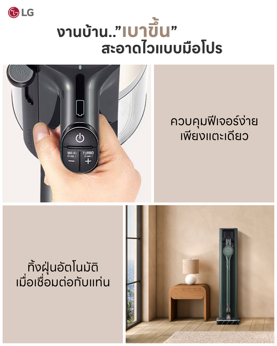 เครื่องดูดฝุ่น LG CordZero™ รุ่น A9T-ULTRA แบบด้ามจับ All-in-One Tower พร้อม Smart WI-FI control ควบคุมสั่งงานผ่านสมาร์ทโฟน (มีหัวถูพื้น)