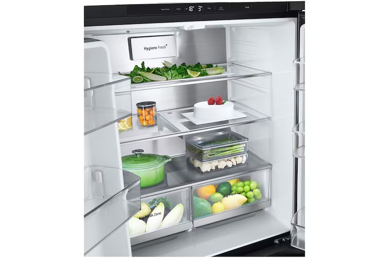 เคาะดูของในตู้ได้ด้วย InstaView™ ดีไซน์ล้ำทันสมัย เปิดดูของในตู้ได้โดยไม่ต้องเปิดประตู เย็นเร็วทั่วถึง สดนาน