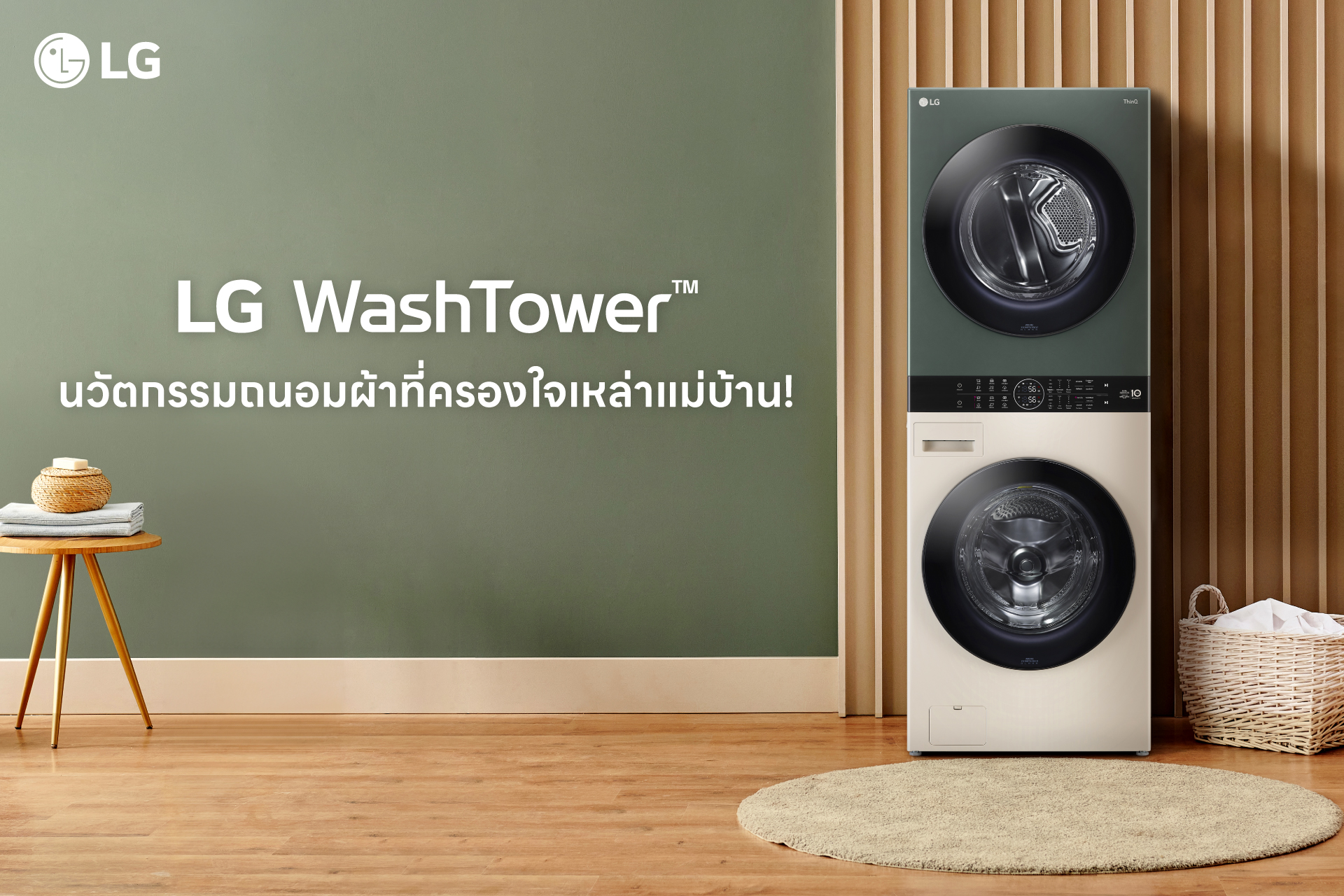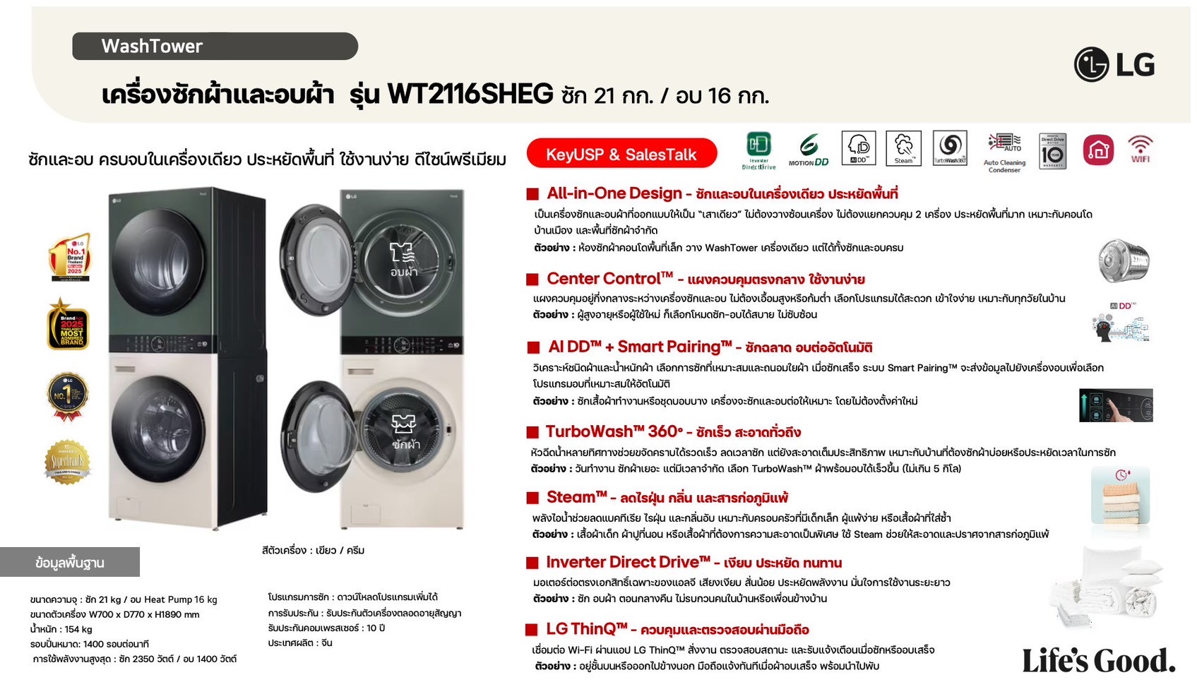 WashTower ซักผ้า 21 กก. และอบ 16 กก. รุ่น WT2116SHEG ระบบ AI DD™ พร้อม Smart WI-FI control ควบคุมสั่งงานผ่านสมาร์ทโฟน