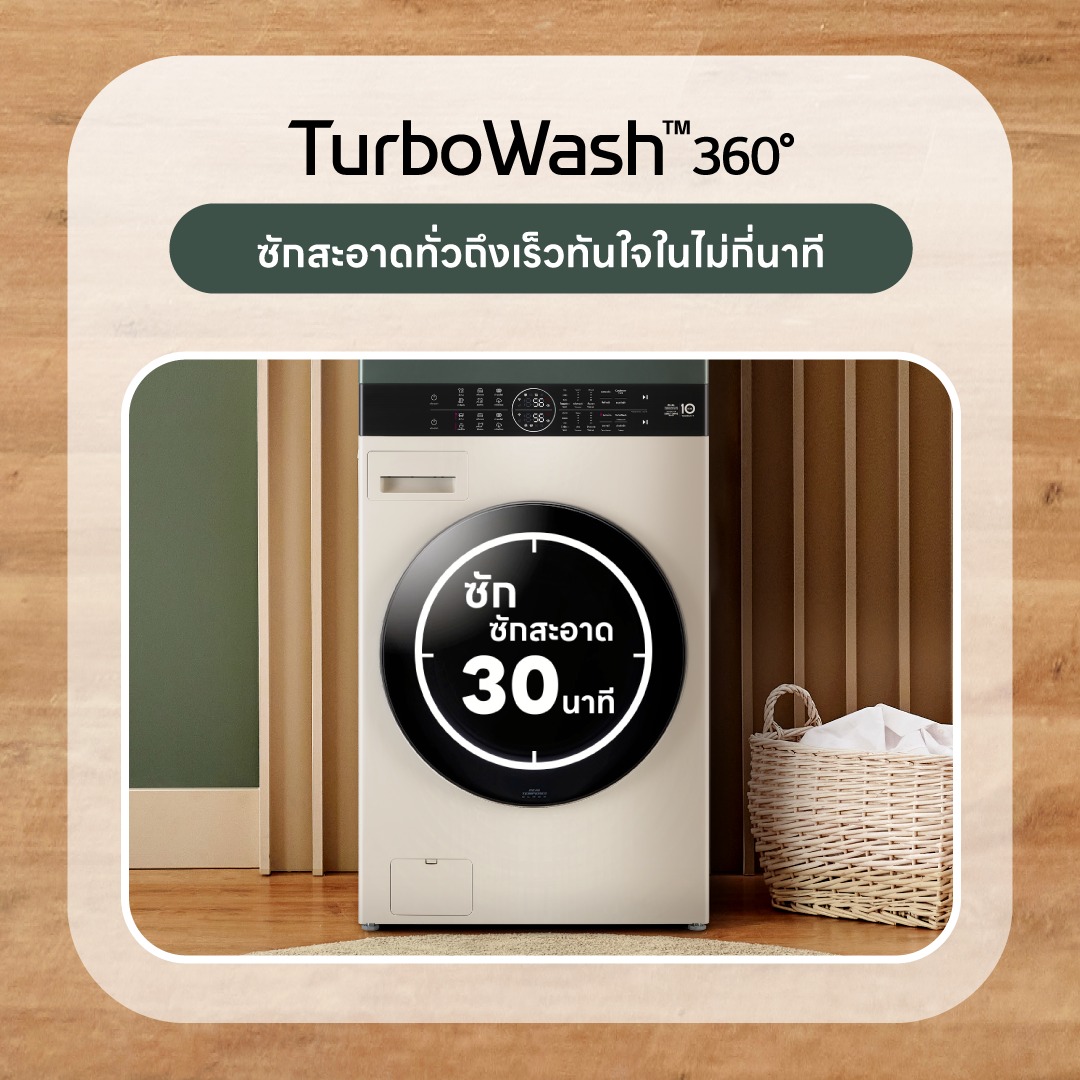 เครื่องซักอบอัจฉริยะขนาดใหญ่ พร้อมระบบ AI ถนอมผ้า ดีไซน์บิลท์อินเรียบหรู ควบคุมผ่านแอป ThinQ ได้อย่างสะดวก