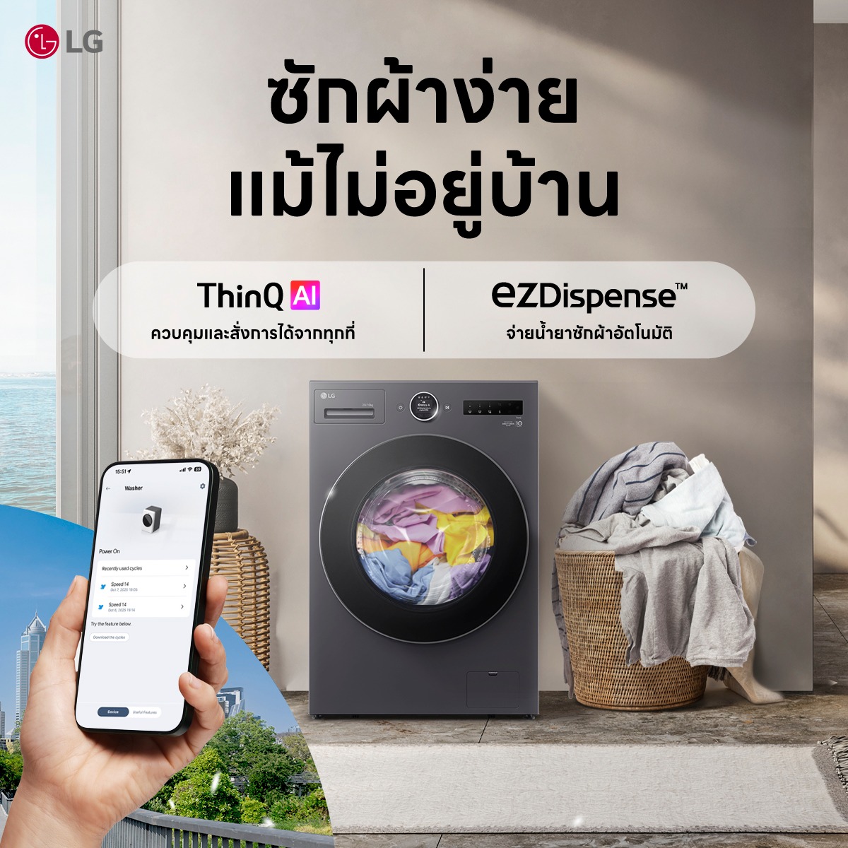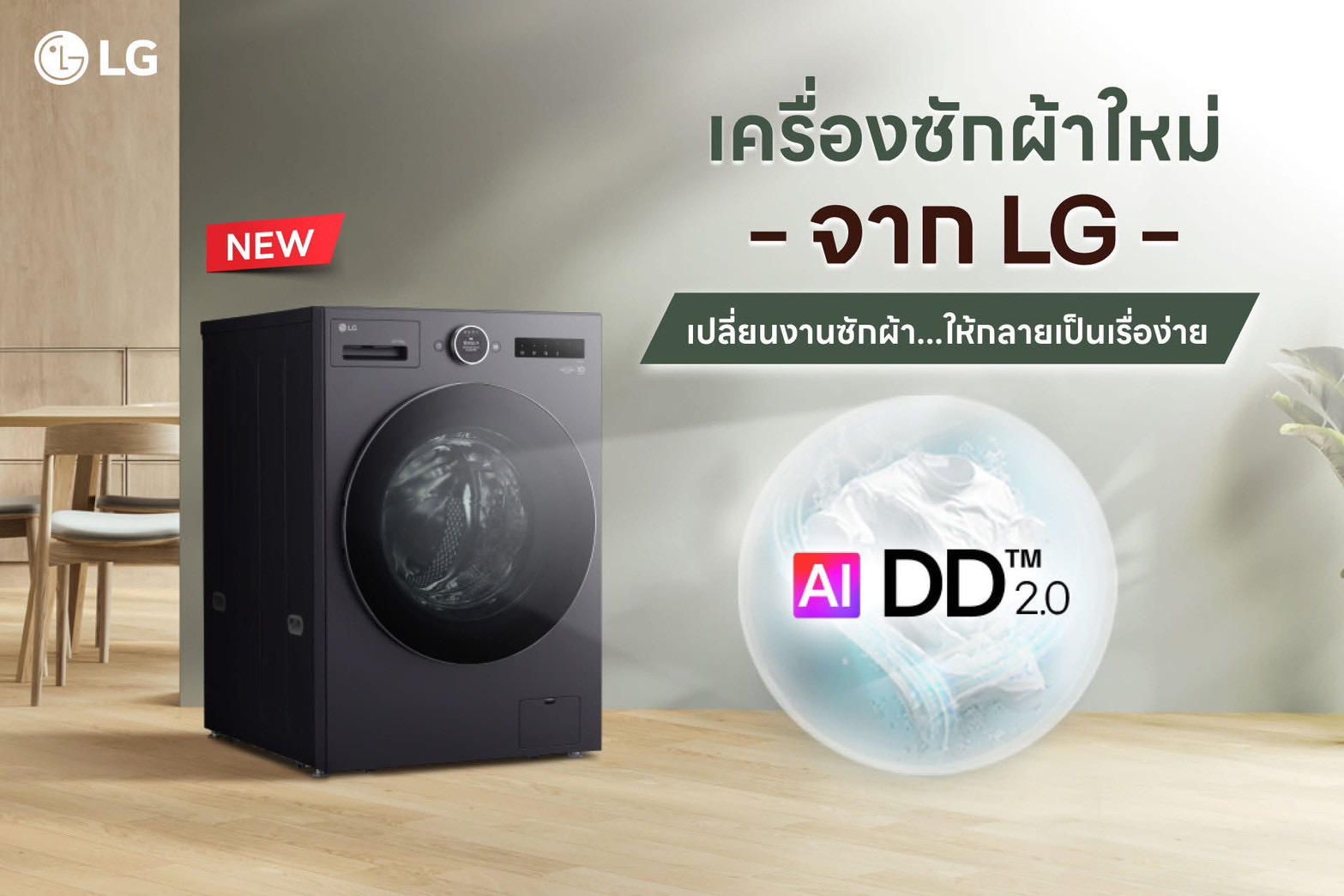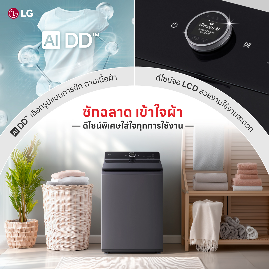 ซักอบจบในเครื่องเดียวด้วย AI Wash 2.0 ถนอมผ้าแม่นยำ ซักเร็ว 39 นาที พร้อมจอ LCD ใช้งานง่าย ezDispense™