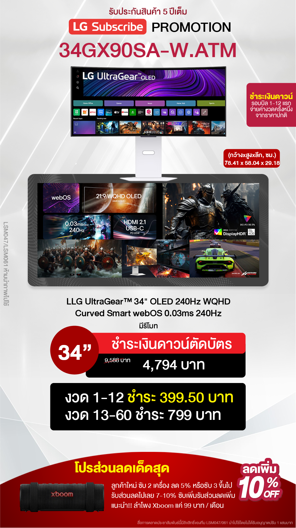 จอโค้ง OLED 34" WQHD รีเฟรช 240Hz ตอบสนองไว 0.03ms พร้อม webOS 24, AI Picture & Sound และรองรับ G-SYNC/FreeSync Premium Pro