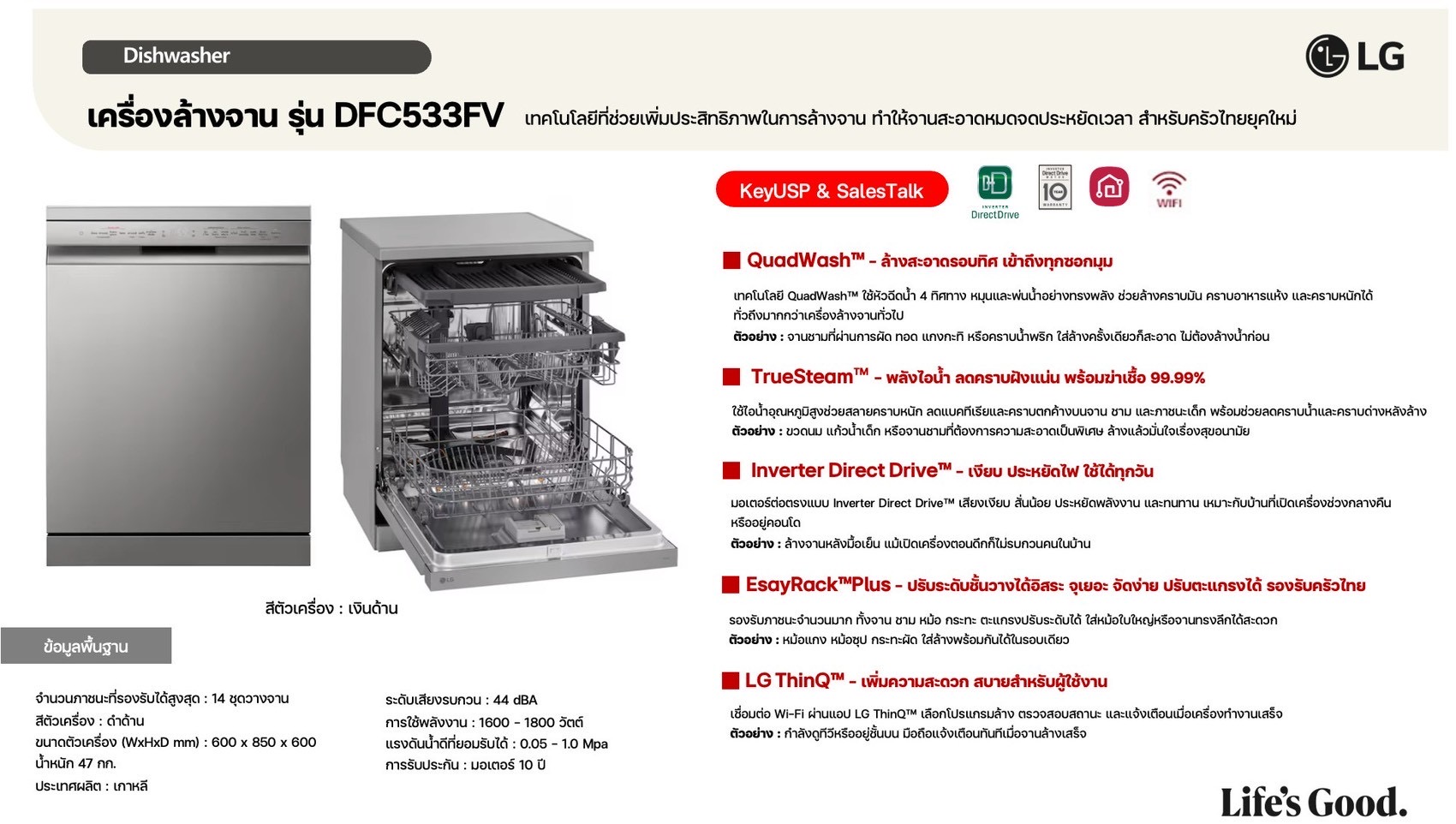 เครื่องล้างจาน DFC533FV สีเงิน WI-FI control