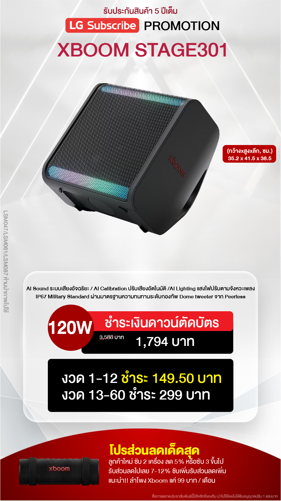 สินค้า 4 ประเภทที่ลูกค้าต้องชำระเงินดาวน์ก่อนรับสินค้า ทีวี มอนิเตอร์ ซาวด์บาร์ และลำโพง xboom แต่ข้อดีคือ 12 เดือนแรกผ่อนสบาย ครึ่งหนึ่งของค่างวดปกติ